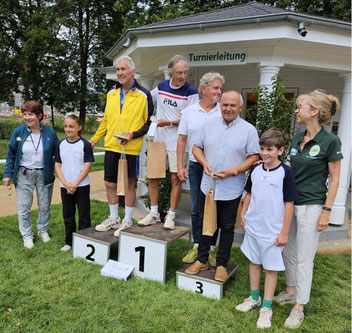 Nicht unerwähnt bleiben soll an dieser Stelle der Auftritt von Dirk Nahrwold vom benachbarten TC Blau-Weiss Holzminden bei den Herren 60+.Nach seinem glatten Sieg im ersten Match traf er im Finale auf den Titelfavoriten Jiri Drapal aus Wolfsburg. Den ersten Satz verbuchte er mit 6:3 für sich, musste dann aber den zweiten Satz 3:6 abgeben. Sein Gegner hatte sich besser auf sein Spiel eingestellt und rückte häufiger und erfolgreich ans Netz vor. Nach 7:10 im Matchtiebreak musste Nahrwold seinem Gegner zum Titel gratulieren, hat aber insgesamt eine starke Leitung geboten. (Quelle: MK)