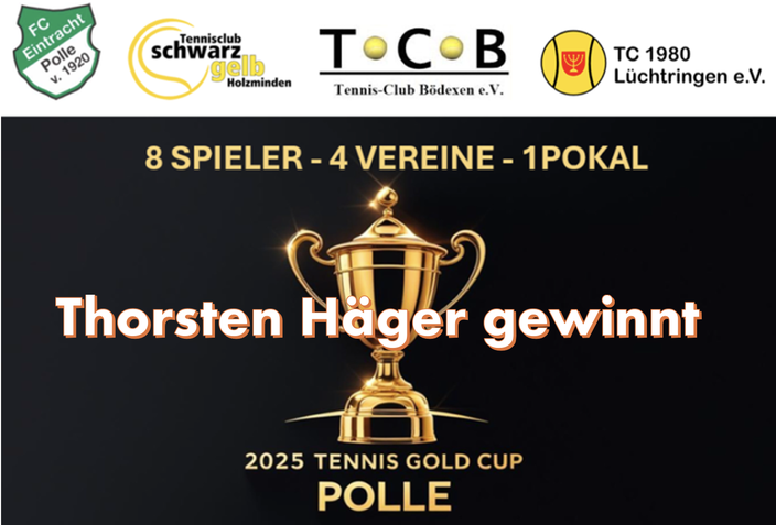 Die neunte Auflage des Tennis Gold Cup – wurde in diesem Jahr vom FC Eintracht Polle organisiert. Die Initiative zu diesem vereinsübergreifenden Einzelturnier ging ehemals von den vier Vereinen TC Schwarz-Gelb Holzminden, TC Bödexen, FC Eintracht Polle und TC Lüchtringen aus. Ziel dieses Cups ist es, die besten Herren-Tennisspieler aus Holzminden und den umliegenden Gemeinden in einem gemeinsamen Wettkampf gegeneinander antreten zu lassen.